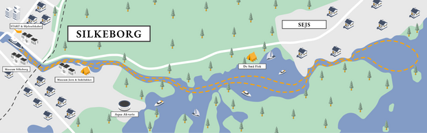 Båden sejler ud fra Hjejleselskabets adresse midt i Silkeborg. Du kan se adressen her.